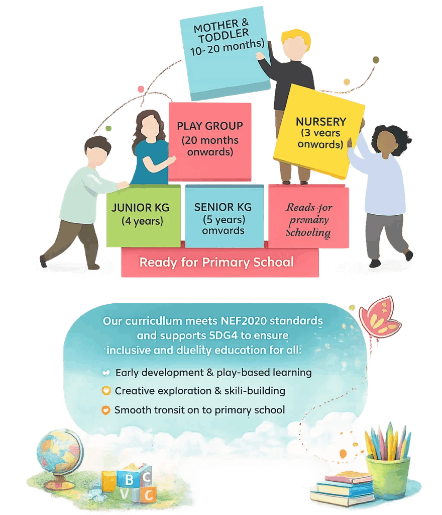 From first friendships to first discoveries, we help children build confidence, creativity, and a lifelong love for learning — one joyful step at a time.